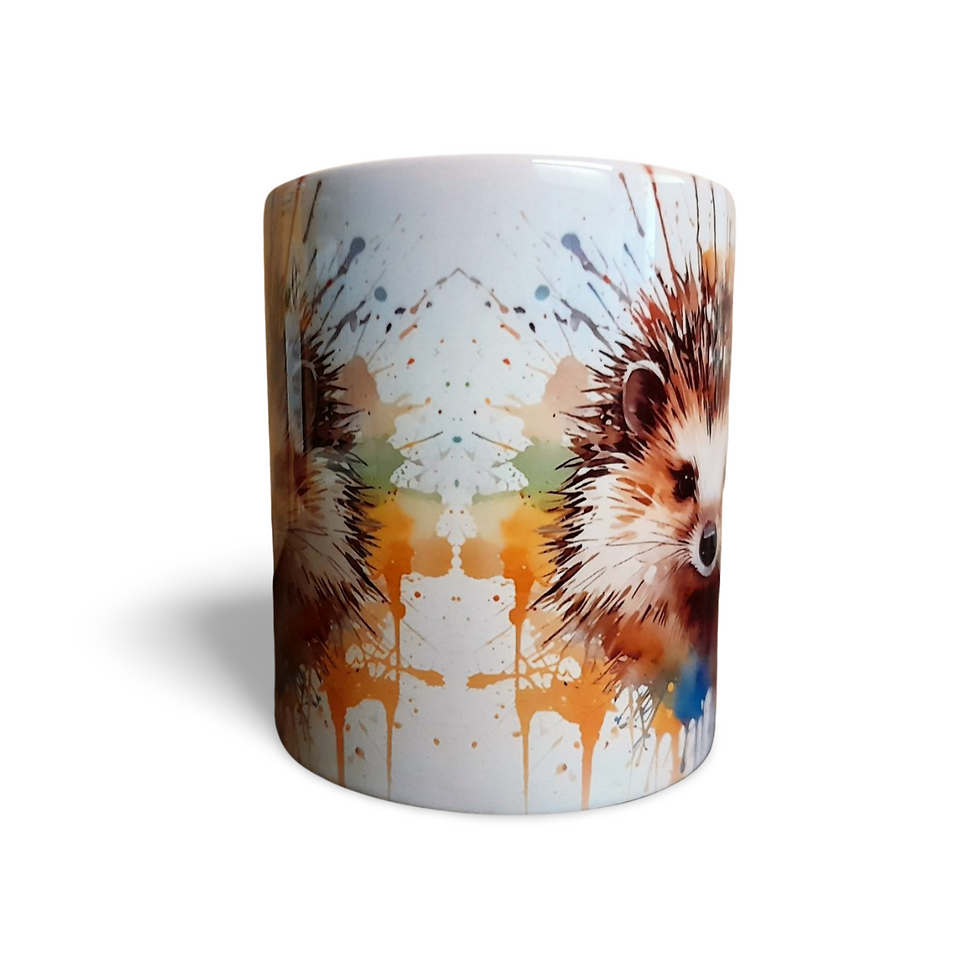 Hedgehog Mug, Hand Printed Ceramic, Optional Coaster